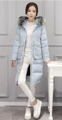 2016 Fashion Long Winter Jacket Women Slim Solid Hooded Fur Collar Zippers Pocket Ladies Long Jacket Warm Down Coat Plus Size