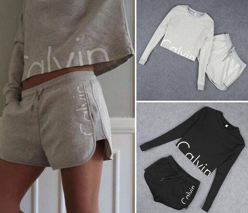 Style: CasualGender: WomenDecoration: NoneClothing Length: ShortClosure Type: NoneMaterial: Cotton,PolyesterPant Closure Type: Elastic WaistCollar: O-NeckSleeve Length: FullPant Length: Shorts